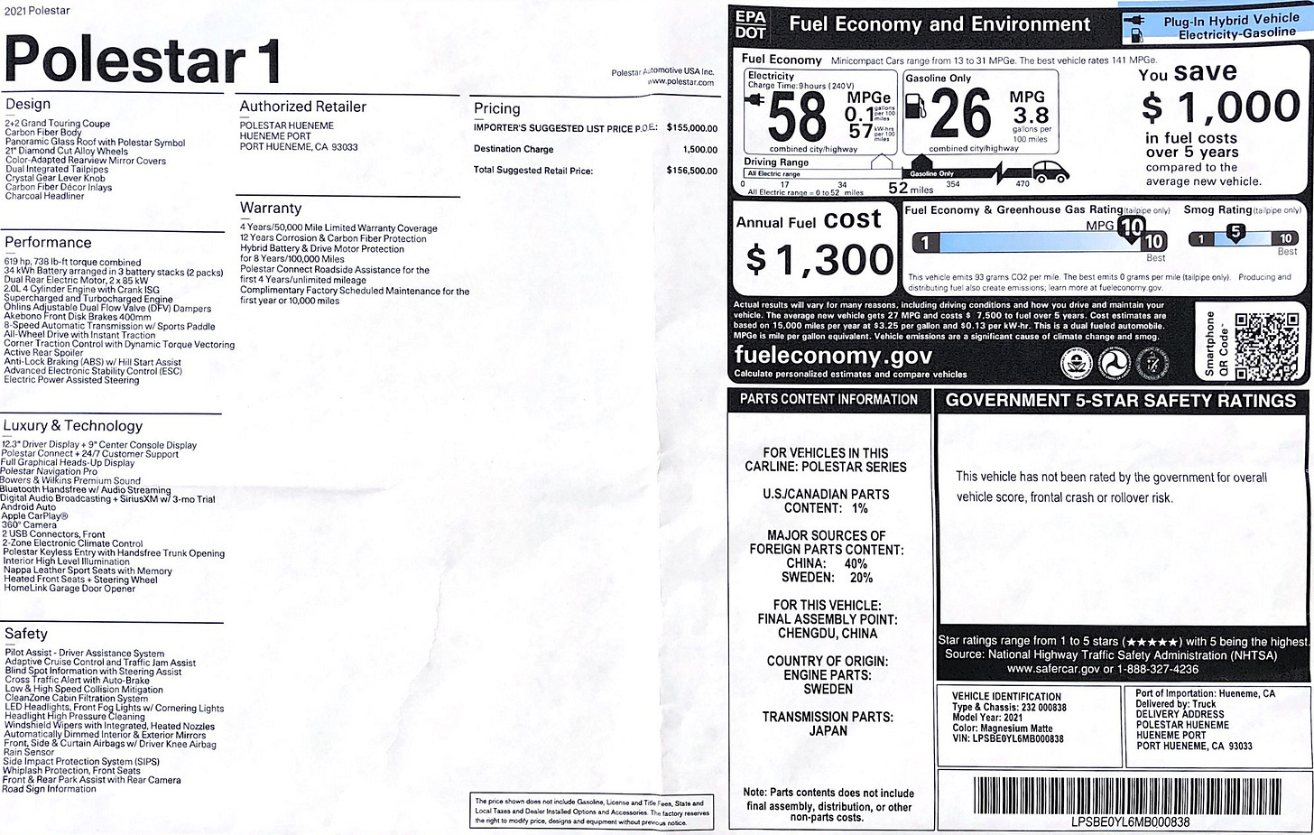 The Polestar 1 is $156,500, and there's only one option: a $5,000 matte paint. It's worth it.