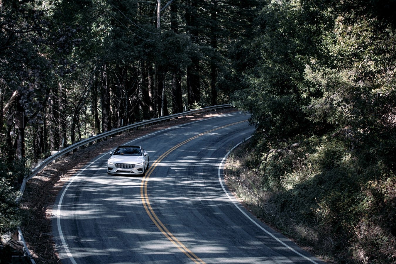The carbon fiber polymer (it's not straight carbon fiber, but that only matters if you're a materials scientist) allows for shapes in the body that wouldn't be possible with sheet steel. That's part of what makes it look so special — it's not easy to quite put your finger on what is different about the Polestar, but you know there's something.